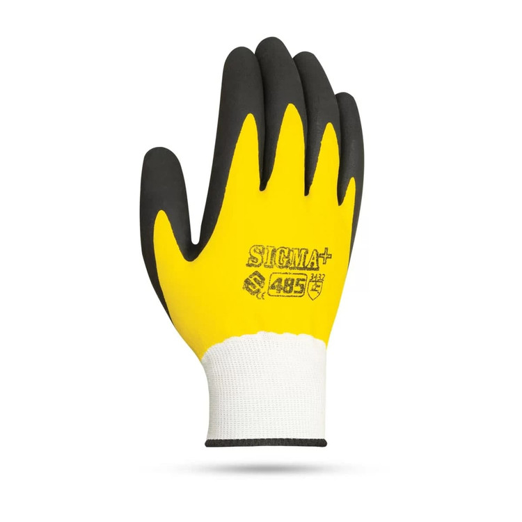 دستکش کار ایمنی فومی سیگما - کد +485: دستکش ایمنی فومی سیگما +485 اولین و تنها دستکش فومی تولید ایران با بالاترین کیفیت می باشد که جزو پرفروش ترین دستکش های سیگما است. دستکش فومی +485 با یک لایه روکش فوم و یک لایه لاتکس پوشیده شده که دارای چنگش قوی و انعطاف بالایی است همچنین ضد برش, ضد لغزش, دارای استحکام کششی بالا, عایق الکتریکی خوب, مقاوم در مقابل اسیدهای معدنی و نمک ها و مواد قلیایی، با کیفیت و با دوام, راحتی هنگام کار و قیمت مناسب می باشد.